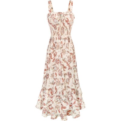 Women's 2025 Summer Flower Bohemian Dress Square Collar Strap Swing A-line Tank Top Skirt Beach Long Dress
